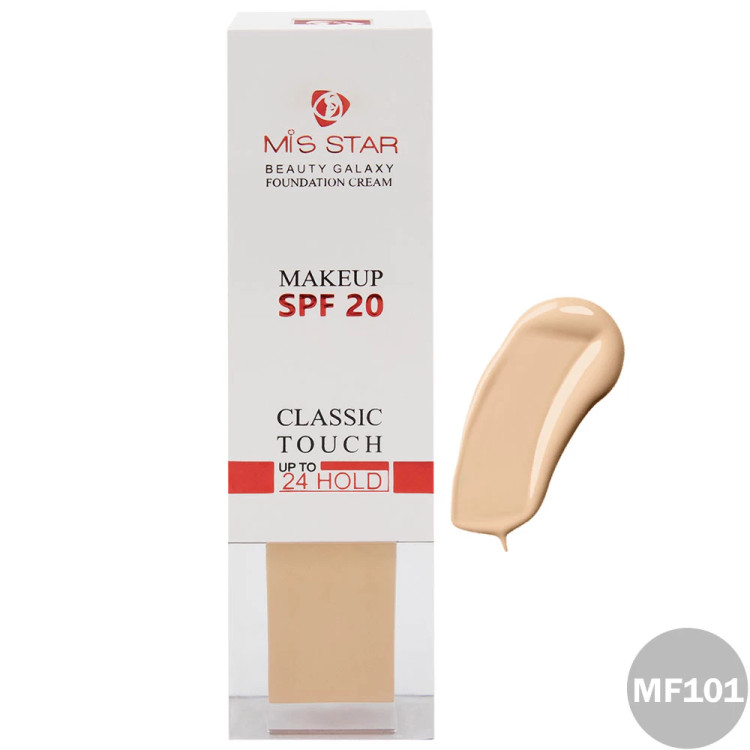 لازم به ذکر می باشد که کرم پودر پمپی میس استار مدل Classic Touch دارای خاصیت ضد آفتابی با SPF 20 می باشد که سبب می گردد پوست شما در برابر اشعه های مضر آفتاب نیز محافظت گردد و همچنین به دلیل کاور بسیار بالا و ماندگاری زیاد برای میکاپ نیز گزینه ای عالی می باشد ،