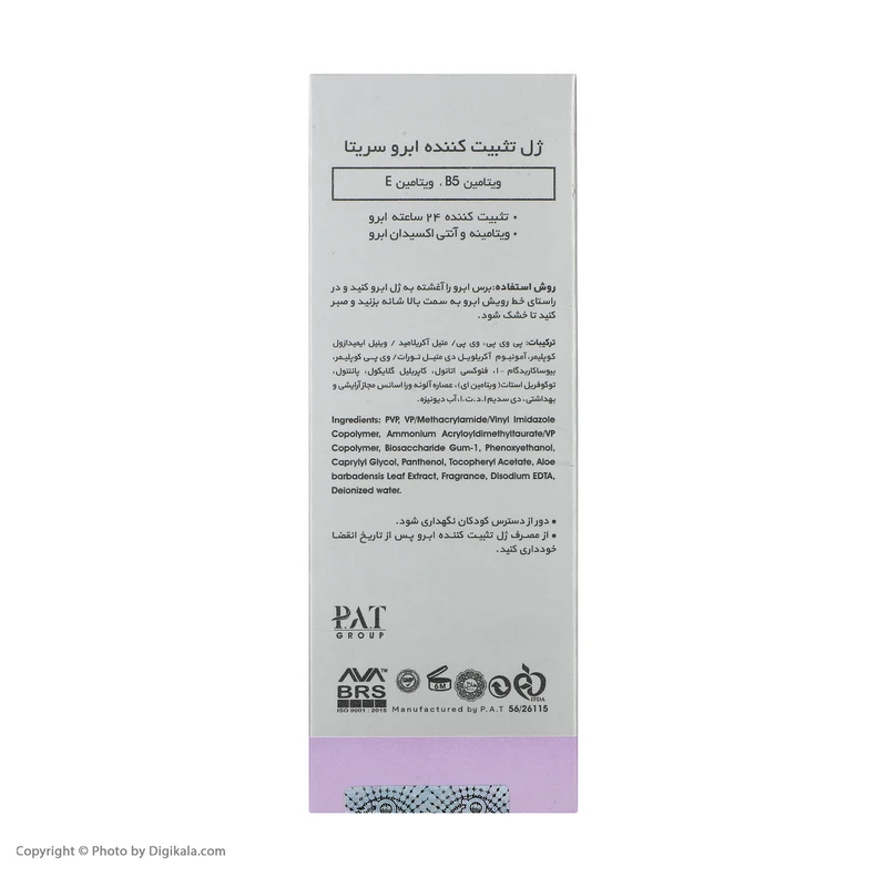 ژل تثبیت کننده ابرو سریتا برای حالت دهی و فرم دهی به ابرو تولید شده است. این محصول حالت ابرو را تا 24 ساعت حفظ کرده و آرایش صورت شما را تکمیل میکند. ژل تثبیت کننده ابرو سریتا دارای فرمولاسیون ویتامینه نیز بوده و حایو ویتامین B5 و E است. این ژل ابرو دارای 8 میلی لیتر حجم بوده و دارای اپلیکاتوری مانند ریمل مژه است. در ترکیبات ژل ابرو سریتا از ویتامین استفاده شده که علاوه بر جنبه آرایشی، باعث تقویت ابرو نیز میشود. این محصول همچنین دارای عصاره آلوئه ورا است که باعث آبرسانی نیز میشود. ژل فیکس ابرو سریتا به ابروها حالت زیبایی داده و در مدت کوتاهی خشک میشود. استفاده از این محصول باعث سفید و گچی شدن ابرو نشده و قدرت نگهداری بالایی دارد. ژل ابرو سریتا بی رنگ بوده و اپلیکاتور آن نیز بسیار کاربردی است. برای استفاده از آن کافیست برس ابرو را آغشته به ژل ابرو کنید و در راستای خط رویش ابرو به سمت بالا شانه بزنید و صبر کنید تا خشک شود.